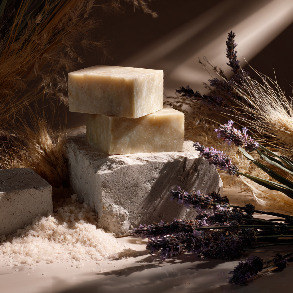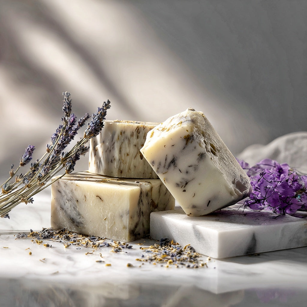 Ingredients: Aloe Vera Water, Saponified, Olive oil, flaxseed oil, coconut oil, sunflower oil shea butter, lemongrass essential oil, basil powder.