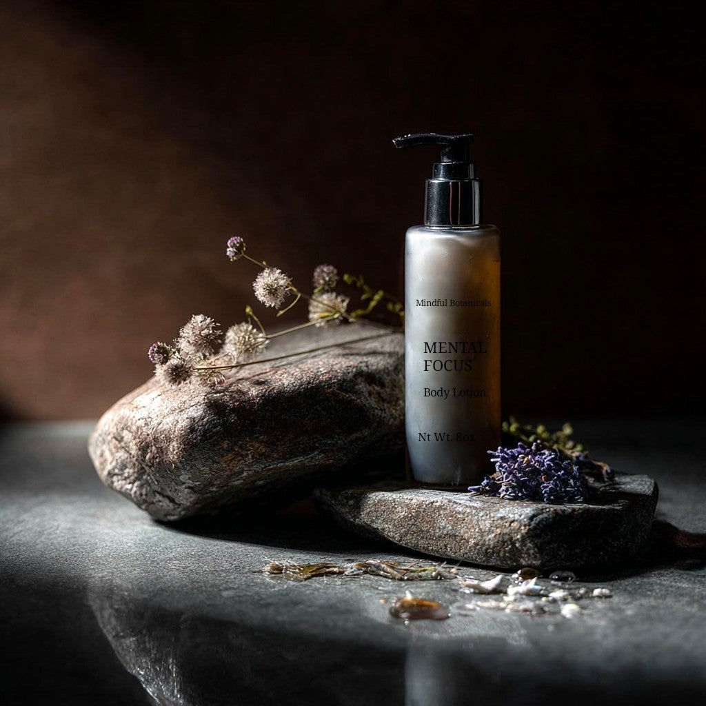 Stay grounded, alert, and ready to conquer your day with our Mental Focus Organic Lotion. Crafted with nourishing plant-based ingredients and enriched with our Mental Focus essential oil blend, this lightweight moisturizer delivers both skin hydration and mind-enhancing aromatherapy.